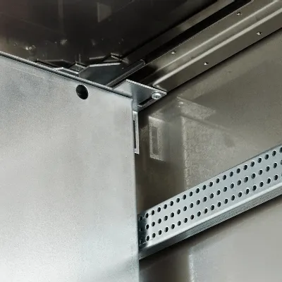 - Each door contains integral cable management rails with 20 mm hole pattern, earth stud and document pocket.